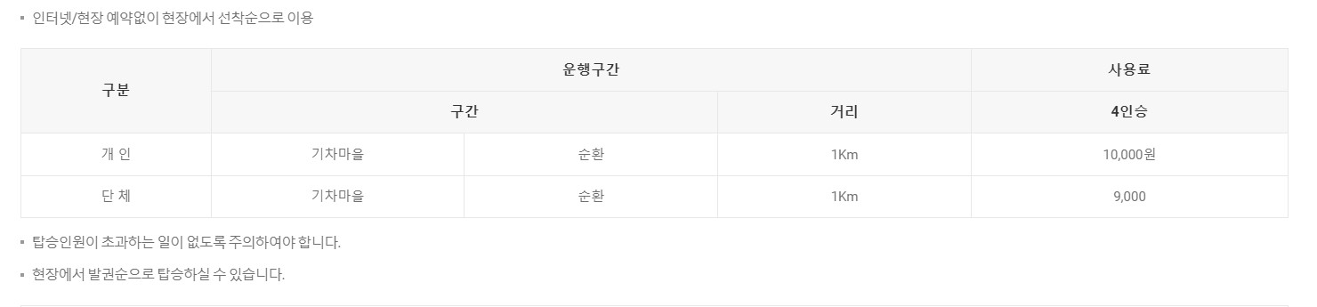 ※ 가정역에서 증기기관차 티켓 발권 시에는 기차마을 입장료가 포함됩니다.