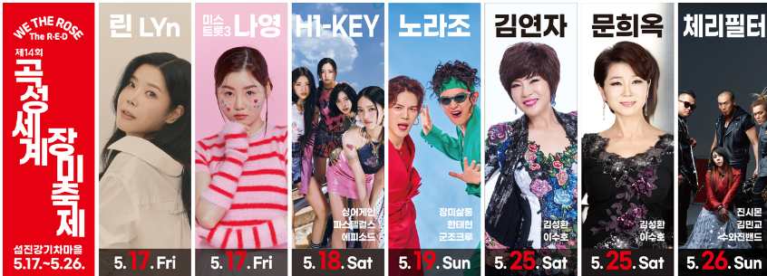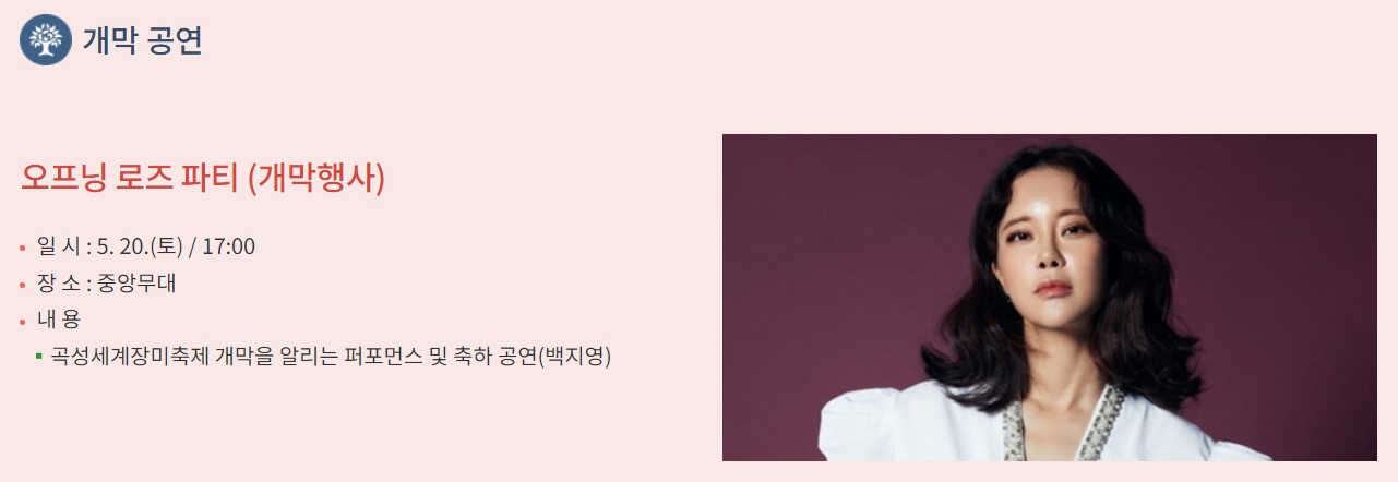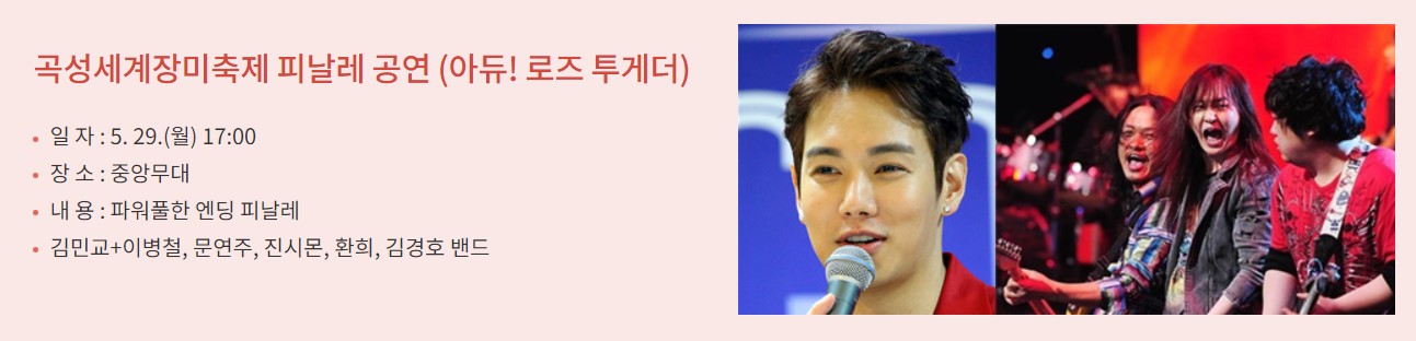 🔽2024 곡성장미축제 초대가수 라인업은 아래에서 확인하세요.
