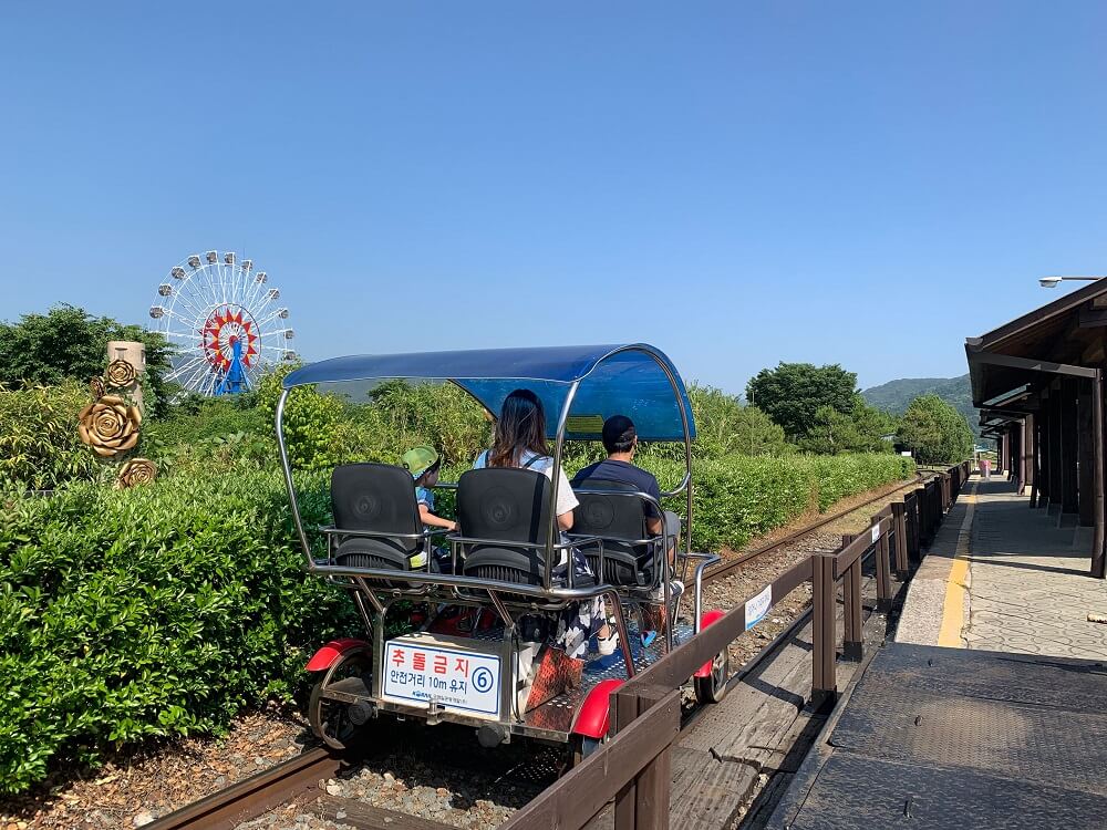곡성 기차마을에세도 탈 수 있는 레일바이크가 있습니다. 1번 순환당 10~15분이 걸리며 이용요금은 10,000원입니다. 1대당 4명까지 탑승할 수 있고 운행시간은 09시부터 17시 30분까지입니다.