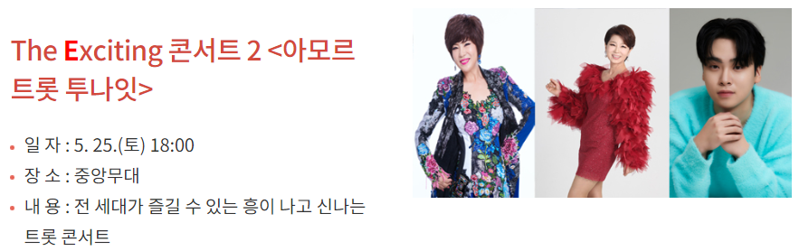 - 내용: 전 세대가 즐길 수 있는 신나는 트롯 콘서트
