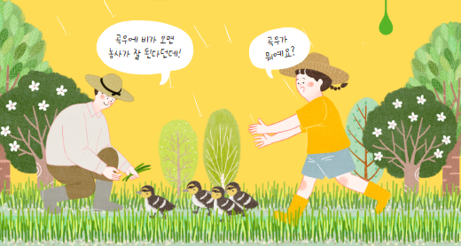 이 시기는 농사를 짓는 데 있어 매우 중요한 비의 시기로 여겨지는데요. 봄비가 내려 백곡을 기름지게 하여 풍요로운 수확을 기원하는 시절이죠.