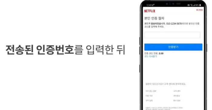 그래서 넷플릭스는 사용자가 개인 정보를 입력하고 핸드폰 번호로 메시지를 보내서 진짜 본인인지 확인하는 절차를 진행합니다.
