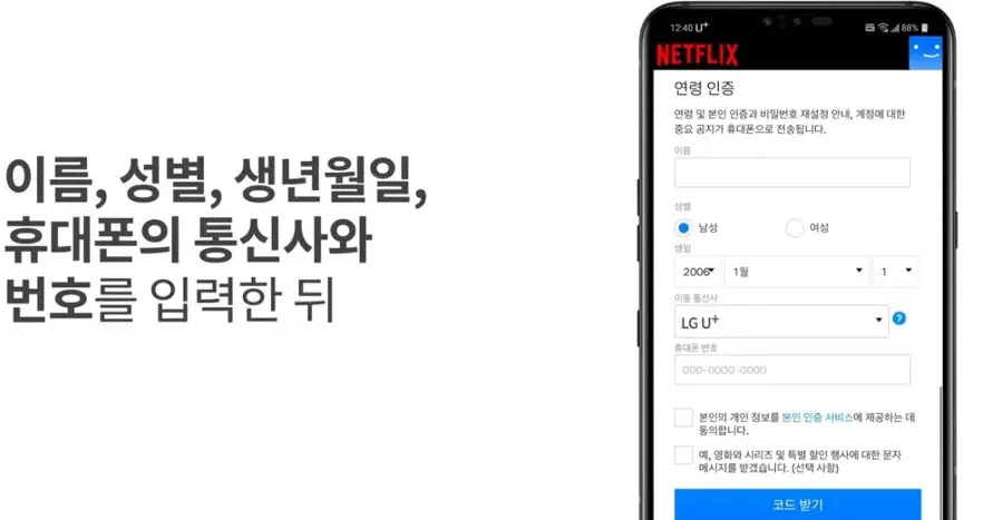 A2: 넷플릭스 연령 인증은 넷플릭스 계정에 로그인한 후, 이름, 생년월일, 성별, 휴대폰 번호를 입력하여 진행할 수 있습니다. 휴대폰으로 인증 코드를 받고, 이를 입력하여 인증을 완료합니다.