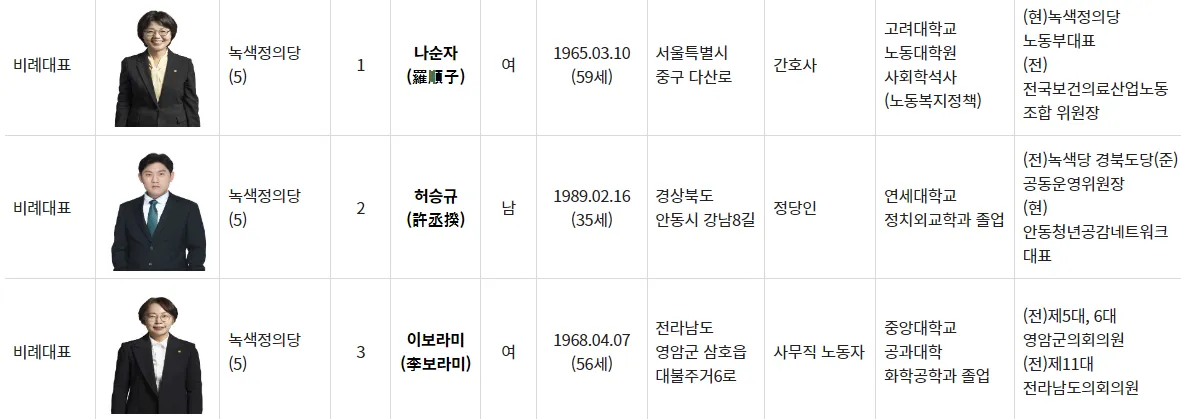 녹색정의당 비례대표