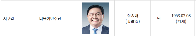 대전 서구갑 국회의원 당선자도 더불어민주당에서 나왔습니. 장종태 당선자는 대전 서구청장을 역임한 바있는 인물입니다.