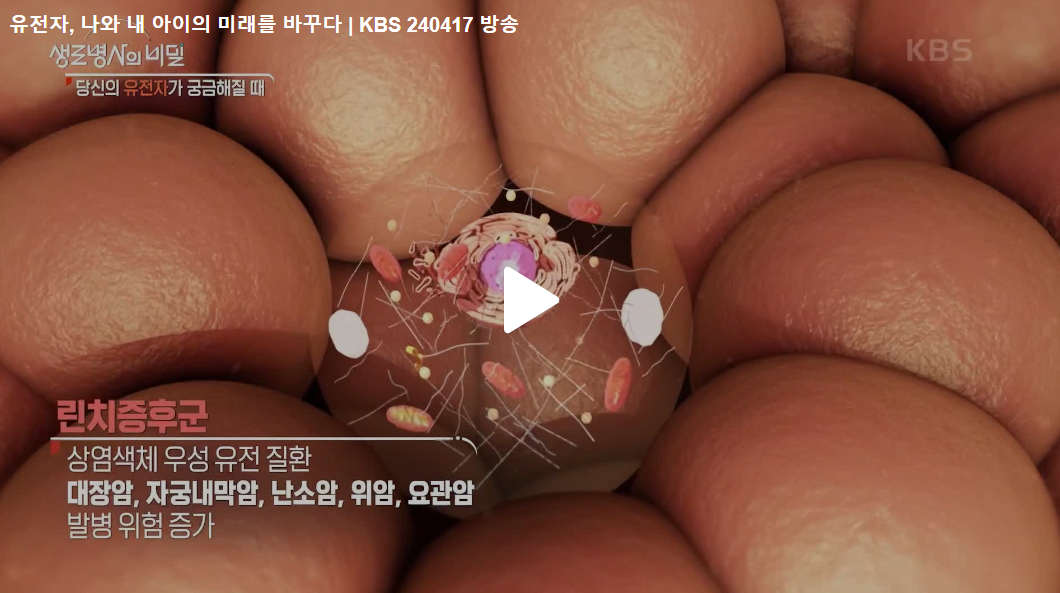 ⏩생로병사의 비밀에서 유전자에 대한 내용을 다루면서 린치증후군에 대한 이야기가 나왔습니다. 생로병사의 비밀 다시보기 하시려면 아래를 클릭해주세요.