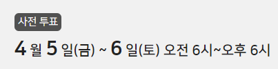 2024년 22대 국회의원 선거를 위한 사전투표일은 4월 5일 금요일부터 4월 6일 토요일까지입니다. 이 두 날 동안에는 오전 6시부터 오후 6시까지 사전투표가 진행되는데요.