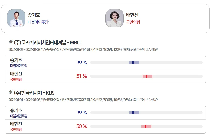 22대 국회의원 선거 전국의 여론조사 결과는 아래 버튼을 통해 확인할 수 있습니다.