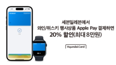 애플페이로 와인이나 위스키 행사상품을 구매하고 결제 시 20%할인되는 이벤트를 하고 있네요. 최대 할인 금액은 8만 원까지입니다.