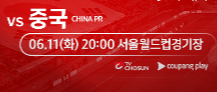 한국 대 중국 축구 경기 시간입니다.